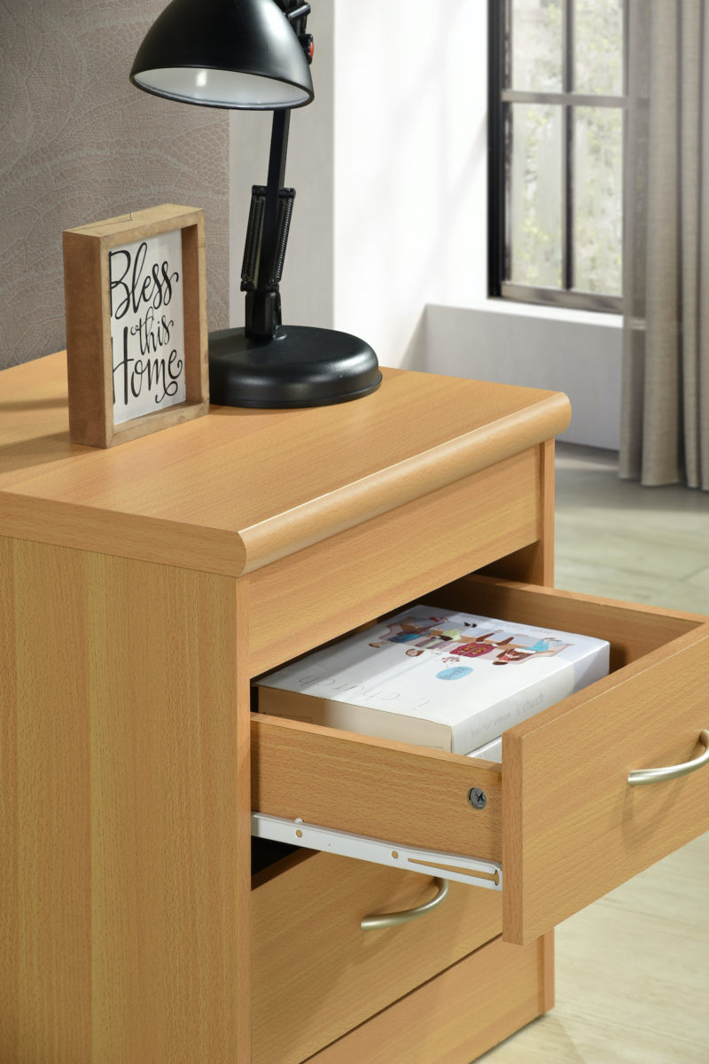 The Hodedah two Drawer Nightstand has a streamlined design, which perfectly blends with any room decor. It features two deep drawers, with ring pull, which can be used to store handy utilities or bedtime essentials. Mount a beautiful lampshade or family photo frame on the top of the nightstand to complete the look of your bedside. This nightstand is lightweight, easily portable and low on maintenance. Wipe it with a soft, dry cloth to keep the surface dust and lint free.