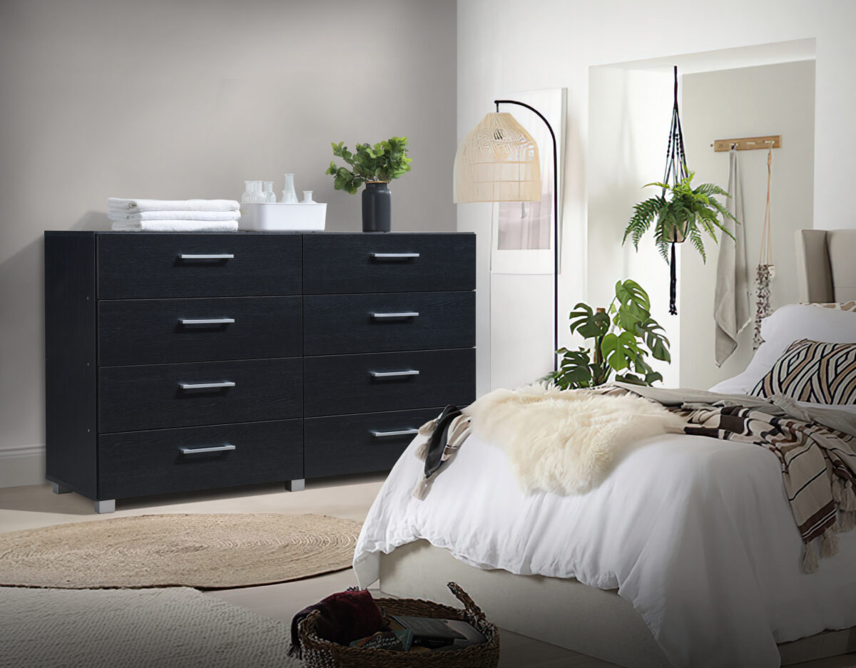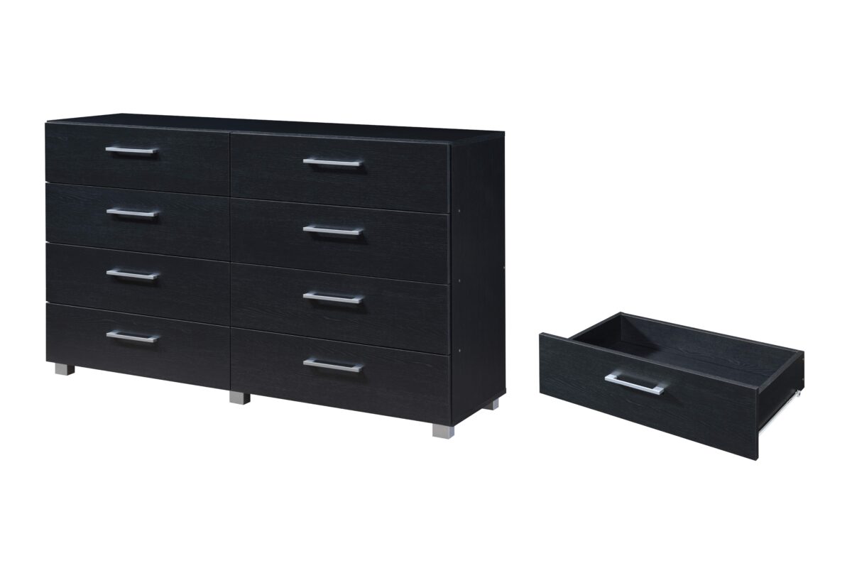 This roomy 8-Drawer Dresser, provides all the space you need to store your clothes and undergarments as well as room to display your décor items on top of it. With its clean lines and minimal style, it easily pairs with a variety of other styles including transitional and modern, so that you can incorporate it into your room. Metal roller glides and built-in safety stop are included on the drawers so that the user experience is as smooth as possible. It is manufactured entirely out of engineered wood which makes it durable. Available in four different colors to perfectly fit your interiors. To ensure proper assembly, please follow all steps provided in the installation manual.