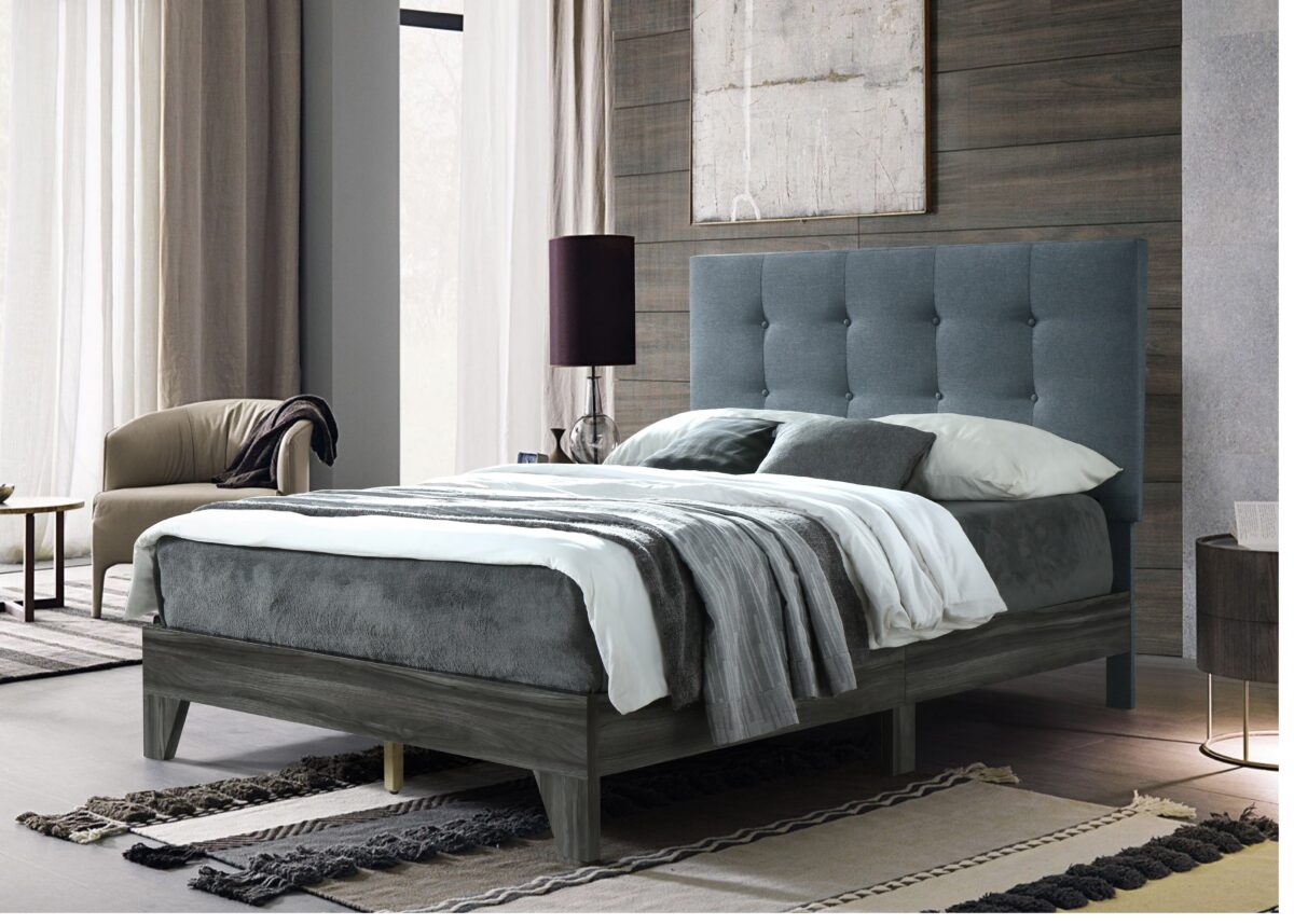 • Modern design with a beautiful tufted headboard finish upholstered in fabric.